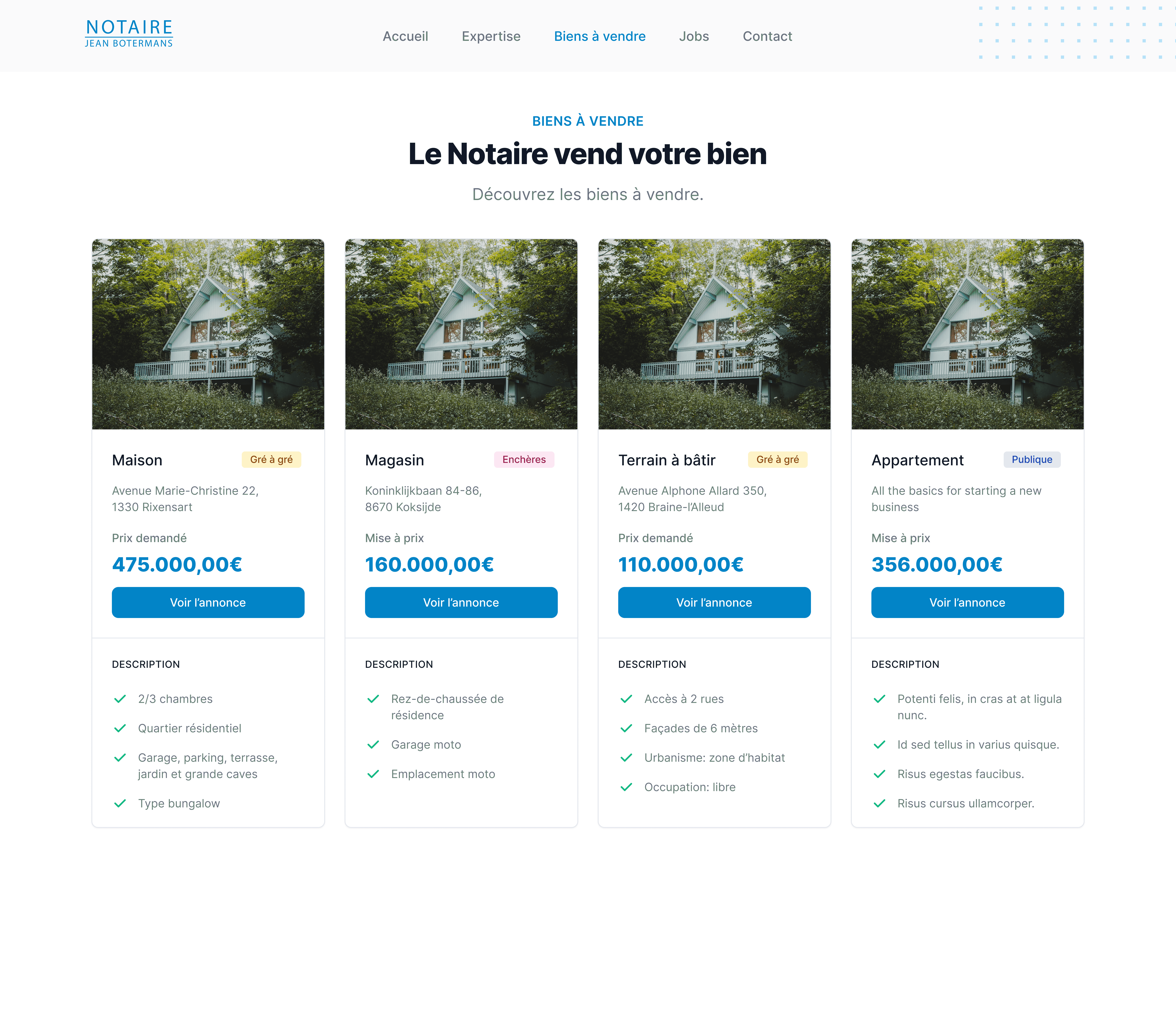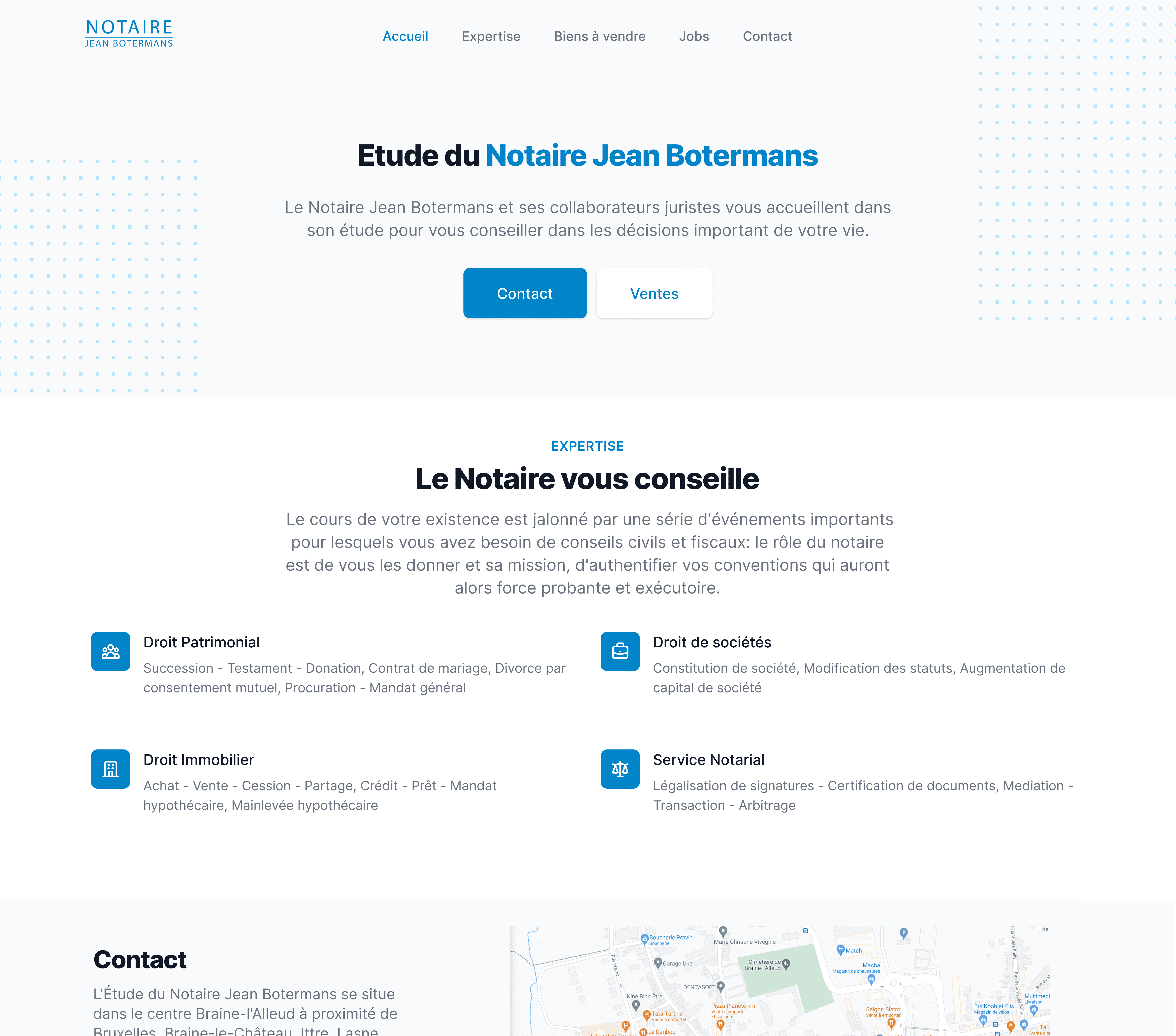 Redesign of the existing website of the Public Notary Botermans, based in Belgium. The briefing for this project was to create a professional feeling and to keep all the original information. I have made use of all the unused white space and designed a more up to date website by giving a smoother flow and including visuals to guide the users.