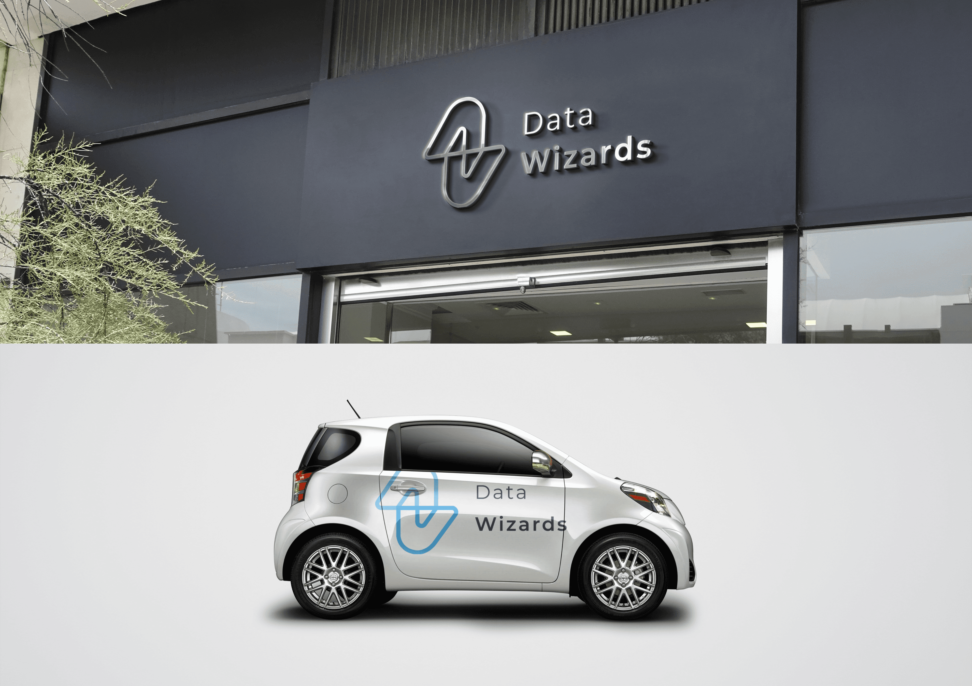 Data Wizards is a Belgium-based consulting company specializing in data science and AI. The goal was to create a logo that clearly reflects this expertise while remaining simple and recognizable. The identity needed to communicate intelligence and technical depth without becoming abstract or obscure.